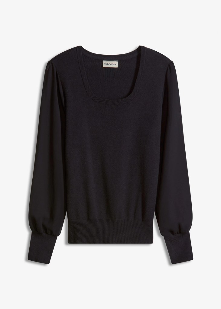 Divatos pulóver sifon ujjakkal. Elegáns letisztult amely szinte minden alkalomra megálja a helyét. Az ujjai átlátszóak. Fekete színe miatt, szinte minden darabbal és színnel kombinálható.